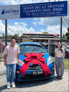 Alhamdulillah kereta pertama saya dapat jugak keluar kan pada minggu ni jugak terima kasih Abg Saiful telah urus kan semua nye daripada A sampai Z terima Kasih ye abg Saiful korang kalau nak beli kereta beli lah dekat kedai SOON HUAT MOTOR TAMPIN SDN.BHD layanan memang tiptop kereta pun tiptpo 👍👍👍